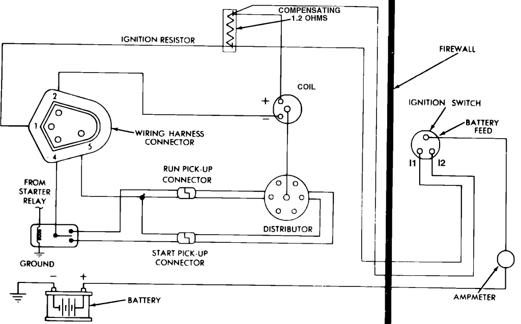 At the heart of any ignition system lies the coil, a device that transforms low battery voltage into the high voltage required to fire a spark plug. However, coils are sensitive to current. Feed a coil a full 13.5 to 14.2 volts continuously, as produced by a running alternator, and current will rise high enough to overheat the coil and damage points or early electronic modules. Chrysler engineers addressed this by installing a ballast resistor in series with the coil during normal operation.