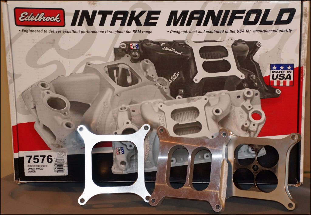 Edelbrock’s Performer RPM Air-Gap (part no. ELD-7576) was the focus of the testing on a modified 340 engine. Three 1-inch carburetor spacers were tested in conjunction with the Performer RPM Air-Gap. The spacers are a CSR tapered 4-hole spacer, a CSR open plenum spacer, and an Edelbrock divided plenum spacer.