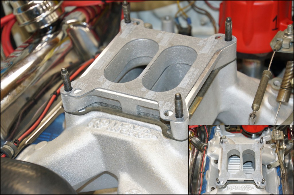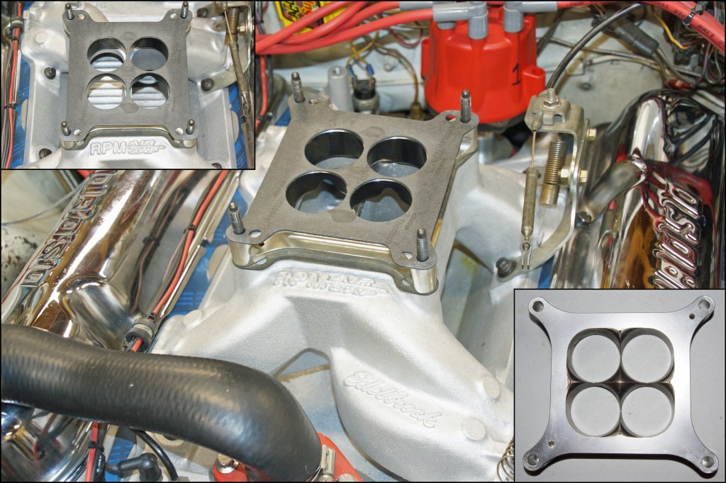 There is no single carb spacer that will be the “magic bullet” for every engine. There will always be tradeoffs for every carb spacer selected. For every torque or horsepower benefit the spacer provides, there will be an offsetting loss of torque or horsepower at another point in the power curve. The key is finding the best spacer to maximize your particular needs to achieve the (in our case) fastest mph, the lowest ET, or the most repeatable set up. The open plenum carb spacer proved to be very beneficial for our combination with the RPM Air-Gap dual-plane manifold. Would this be the best carb spacer for a hot and sultry summer day? We do not know for sure, so more testing is the only answer to determine how the spacer would fare in different weather conditions. If an internal change was made to the engine (camshaft, heads, different stroke, etc.), all the spacer data could be thrown out the window, and again, more testing would verify what is successful and what is not. Most of the time, the use of carb spacers will assist the performance as the spacers are a fine-tuning point for your combination, and the spacers are not a method of adding huge amounts of torque or horsepower simply through an installation.