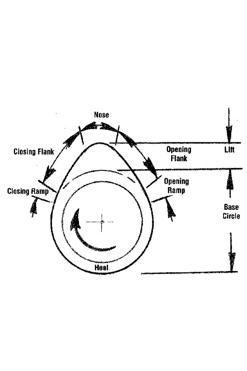 At its foundation is the base circle. The heel (base circle) is the perfectly round portion of the lobe where no valve lift occurs. When the lifter or follower rides on the base circle, the valve is fully closed. The diameter of the base circle is crucial because it establishes lifter preload in hydraulic systems and valve lash in solid lifter combinations. Cam grinders often decrease the base circle when increasing lobe lift on a stock core, a detail that matters during installation and geometry setup.
